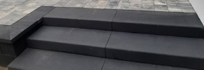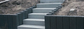 Duże stopnie schodowe w postaci bloków betonowych barwione w masie.